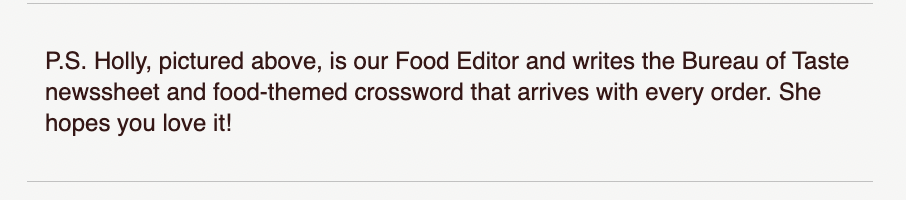 The post-note about the Food Editor and her smiling photo adds a friendly touch!